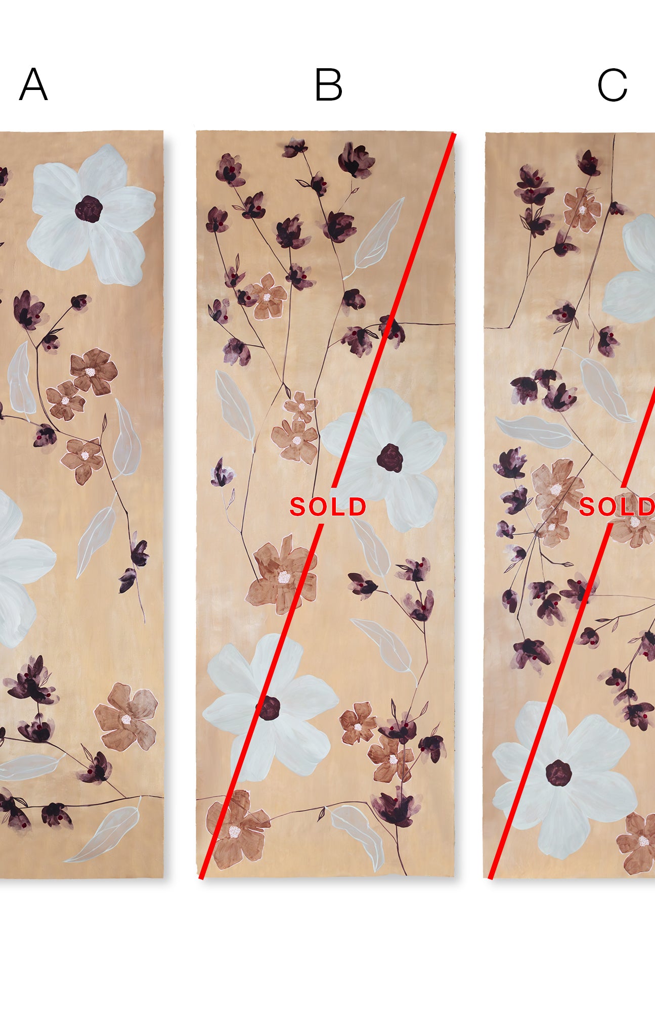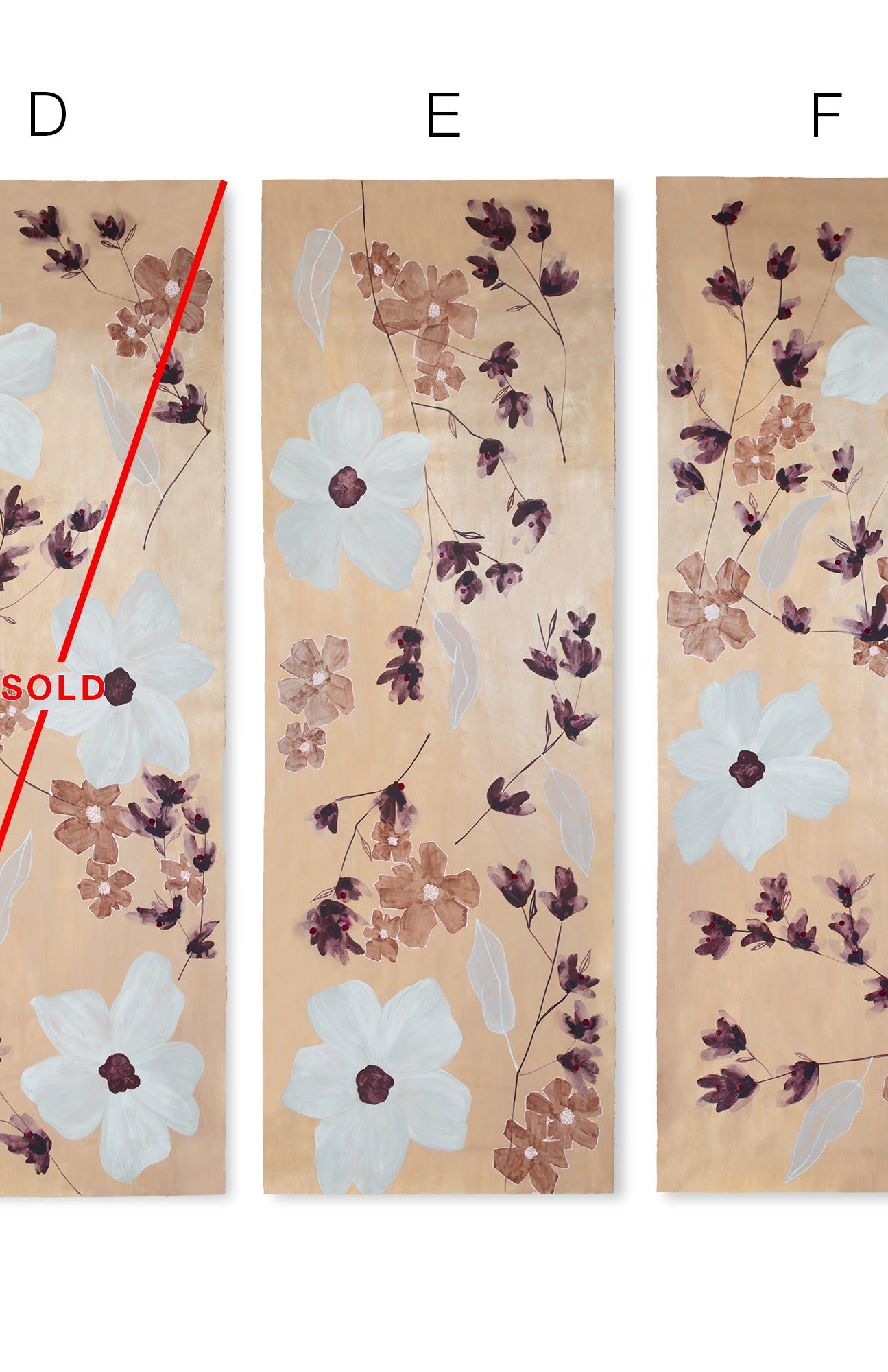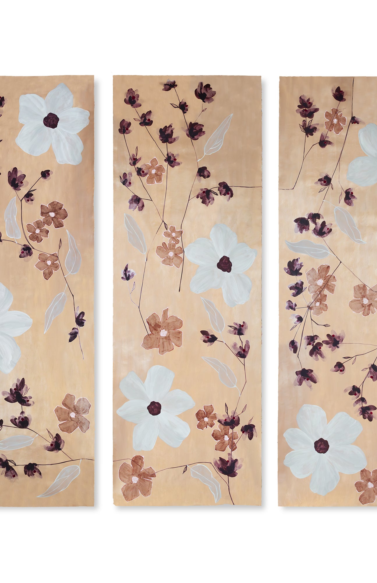As Kelly and Bridgett explored scale, composition, and color, these works emerged – evidence of the experimentation and refinement behind each final design. Each piece carries the history of its creation, touched by the same materials and hand-painted techniques used in our wallcoverings.